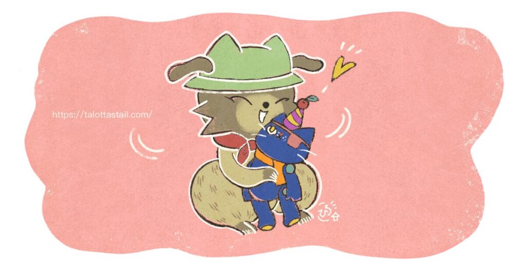 ただ、タロッ太には自分が猫ということは内緒にしていて、ふわふわの耳とモサモサのしっぽは体毛に埋めて隠している。